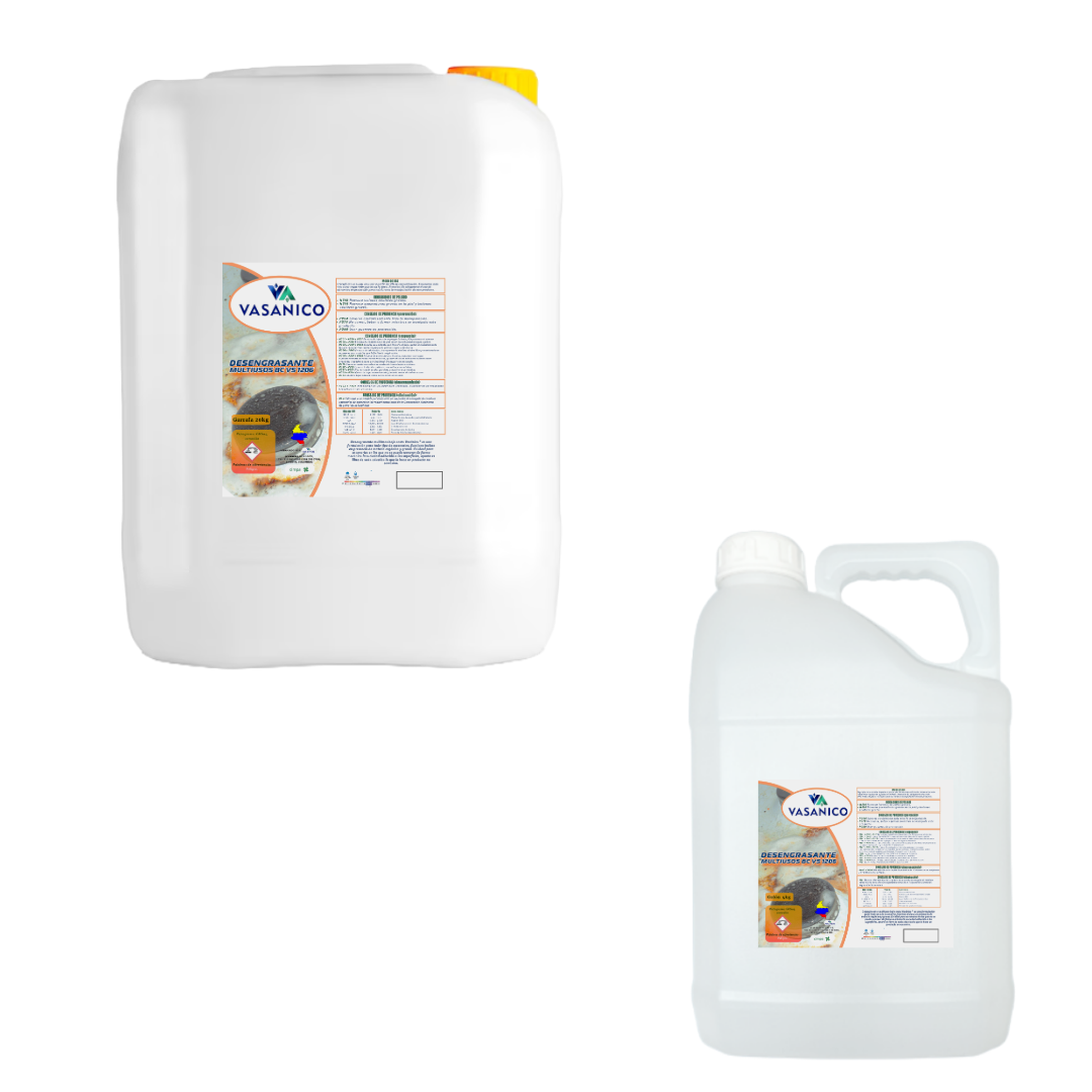 Desengrasante multiuso Vasánico es una formulación para todo tipo de escenarios, funciona incluso en presencia de materia orgánica y grasas. Es ideal para escenarios en los que no se puede remover de forma mecánica la suciedad adherida a las superficies.